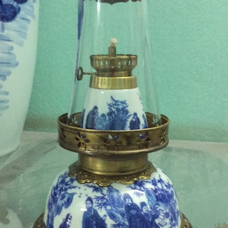 01 Đèn dầu thờ men lam gốm sứ Bát Tràng