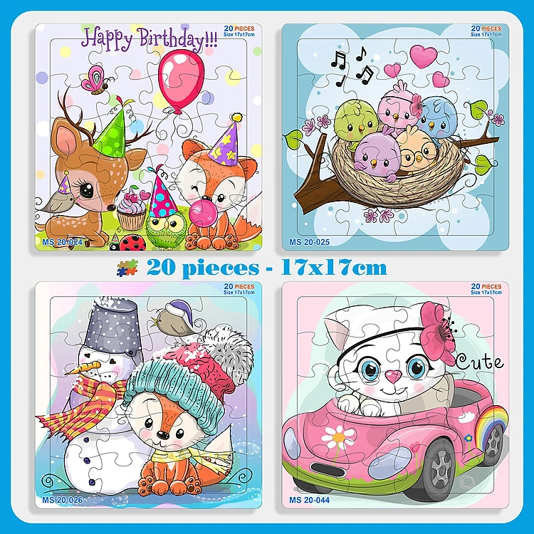 05 bộ tranh xếp hình 20 mảnh size 17x17cm – đồ chơi trí tuệ cho bé từ 2 tuổi – Combo Động vật dễ thương 1