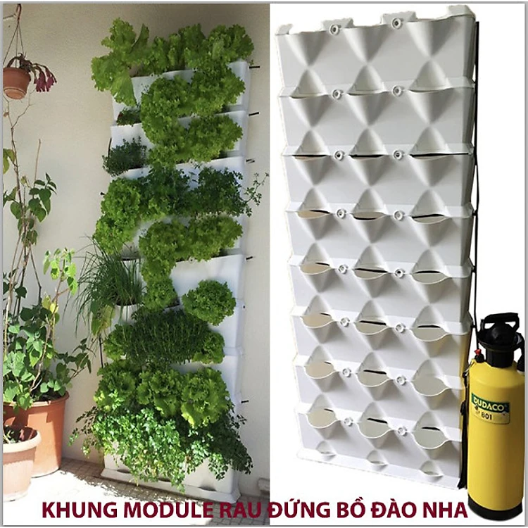 08 Chậu trồng rau thông minh Không thay đất Vertical (màu trắng) nhập khẩu Bồ Đào Nha kèm bộ tưới nhỏ giọt và bón phân Bán tự động (khu vực Không có vòi cấp)