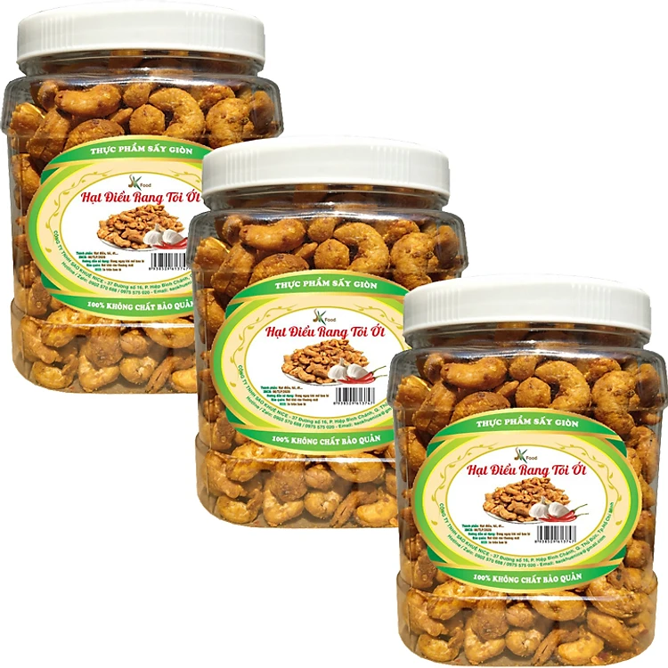 1.5KG HẠT ĐIỀU NGUYÊN RANG TỎI ỚT LOẠI CAO CẤP THƯƠNG HIỆU SK FOOD - COMBO 3 HŨ