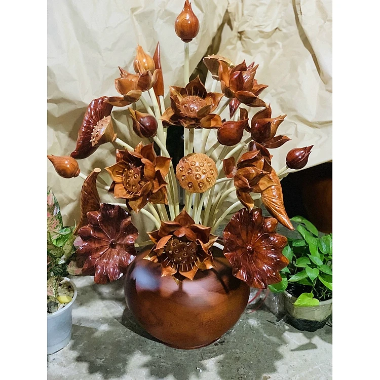 1 bình hoa sen 25 cành , trang trí phòng thờ phòng khách bằng gỗ hương đỏ đẹp long lanh ,