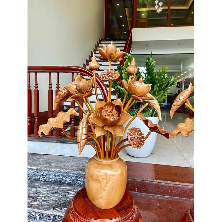1 Bình hoa sen bằng gỗ ngọc am 15 cành trang trí phòng khách phòng thờ