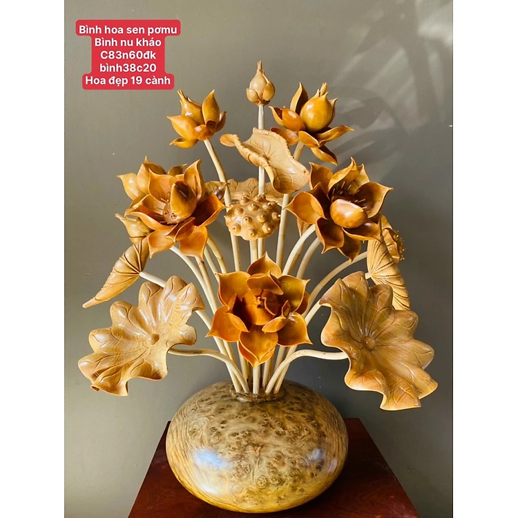 1 Bình hoa sen bằng gỗ pơmu 19 cành hoa lá gương ,trang trí phòng khách ,phòng thờ tuyệt đẹp
