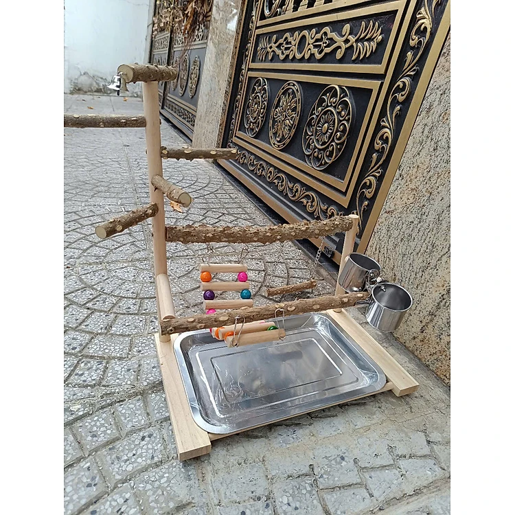 1 bộ cầu đứng gổ gạo mẫu 3 (dài 37 rộng 22.5 cao 42) dùng cho vẹt LB, cockateil, GC, lory, caique, monk, ngực hồng đậu