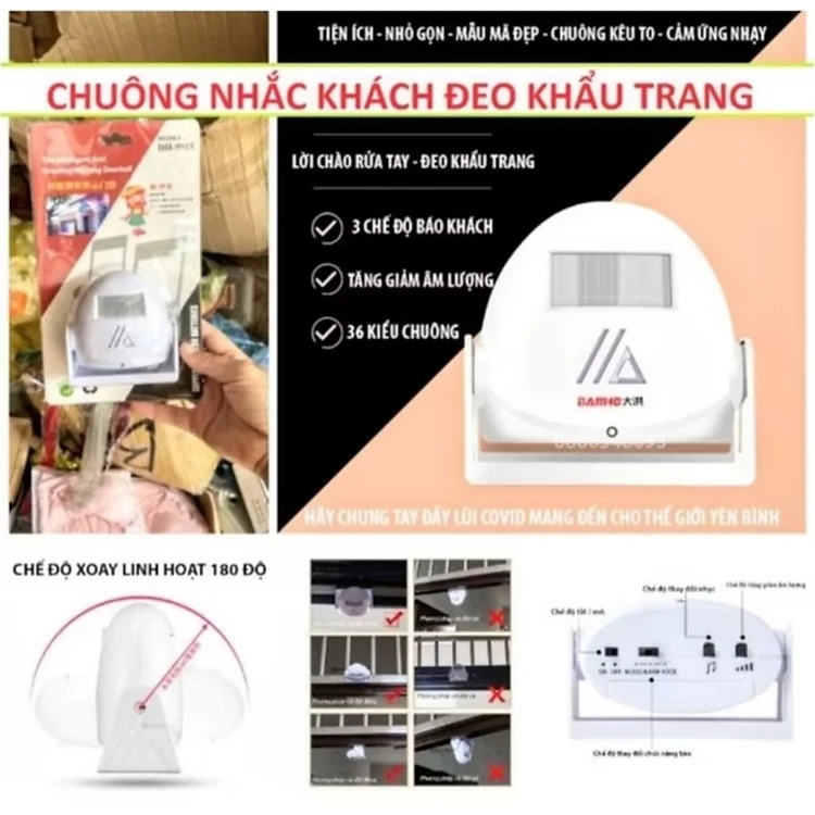 1 CÁI CHUÔNG CỬA BÁO KHÁCH BÁO RỬA TAY SÁT KHUẨN BẰNG HỒNG NGOẠI THÔNG MINH