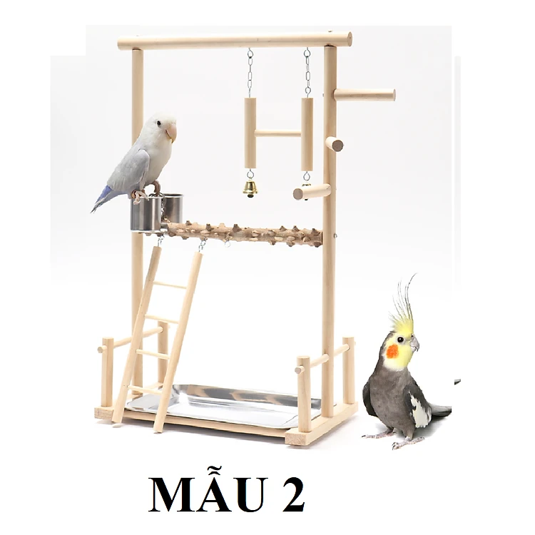 1 cầu đứng thanh ngang gỗ gạo dùng cho vẹt đứng (kèm đồ chơi, cóng ăn và thang đu)