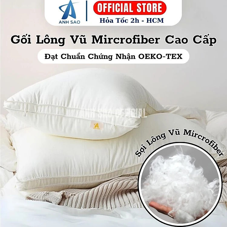 1 Gối Lông vũ Microfiber Cao cấp A - Đạt Chứng nhận OEKO-TEK an toàn sức khỏe, không chứa chất độc hại - Gối nằm êm ái, mềm mịn, kháng khuẩn - Gối chuẩn khách sạn 5 sao