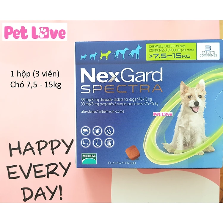1 hộp NexGard Spectra trị giun, ghẻ, ve rận, viêm da (chó 7,5 - 15kg; hộp 3 viên)