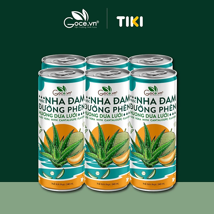 1 Lốc (6 Lon) - Nước nha đam đường phèn hương dưa lưới Goce.vn - 240ml