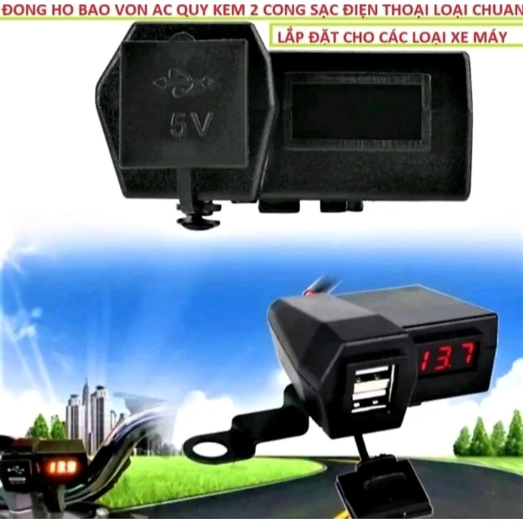 1 SẠC ĐIÊN THOAI BÁO VON ẮC QUY LẮP XE MÁY MẪU MỚI