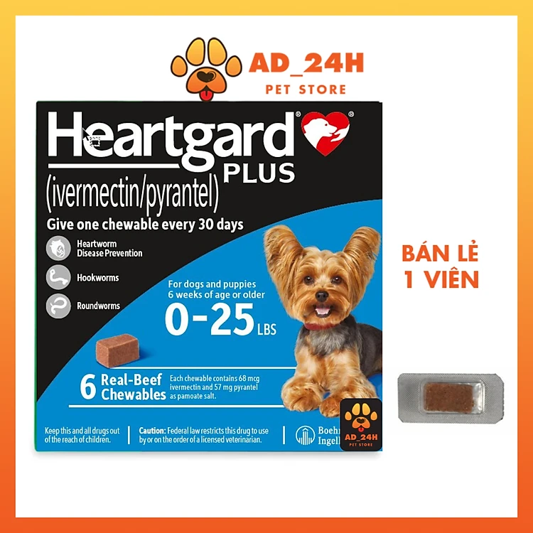 1 viên HEARTGARD tẩy giun tim, giun đũa, giun móc cho chó từ 600gr đến 45kg