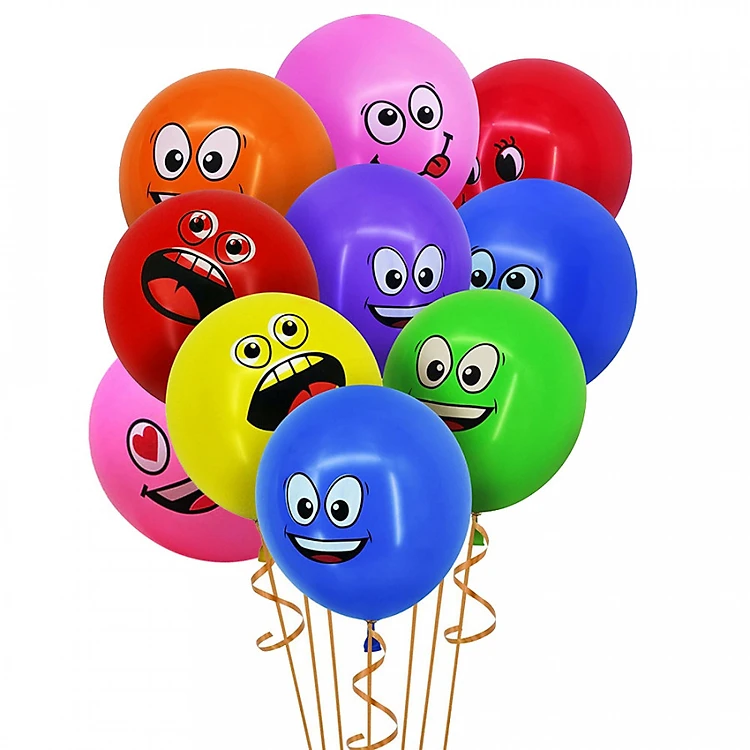10 bong bóng cao su in hình mặt cảm xúc, nhiều màu ngẫu nhiên