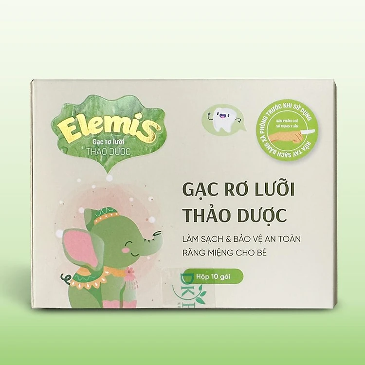 [10 gói] Gạc rơ lưỡi thảo dược Elemis - chiết xuất rau ngót chống sâu răng, sún răng, làm sạch mảng bám trong miệng
