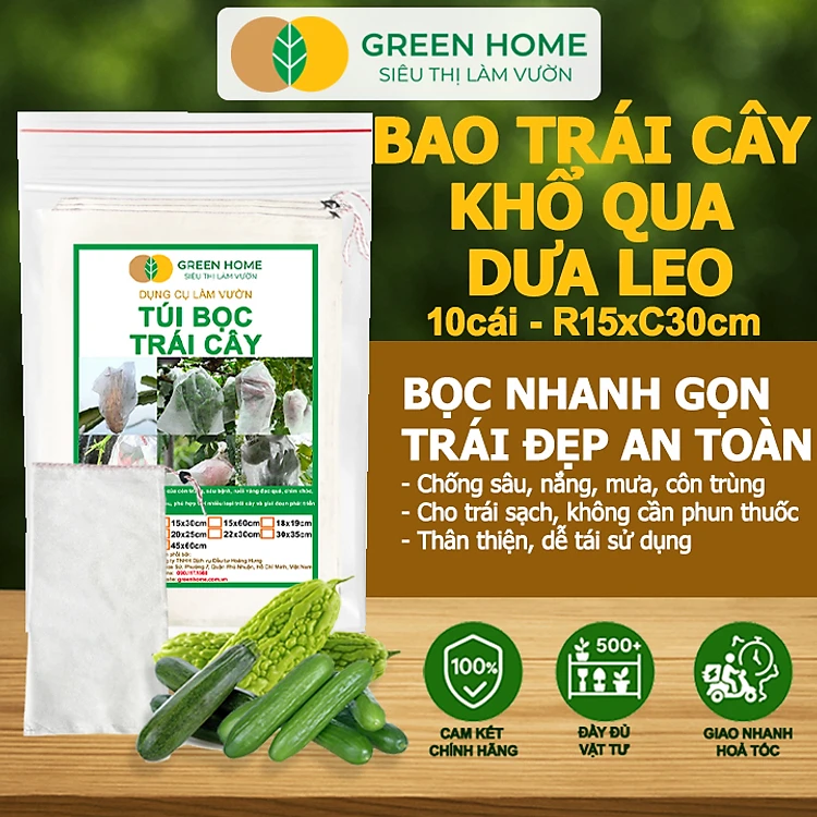 10 Túi Bọc Khổ Qua GreenHome, 15x30cm, Có Nút Cài, Độ Bền 3-5 Năm, Nhiều Kích thước