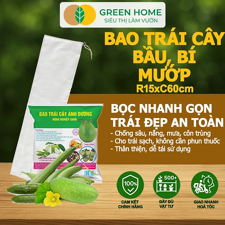 10 Túi Bọc Mướp GreenHome, 15x60cm, Có Nút Cài, Độ Bền 3-5 Năm, Nhiều Kích thước