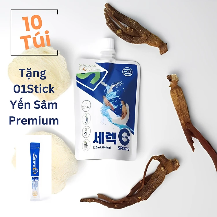 10 Túi Nước uống yến sâm Hàn Quốc, Tặng 01stick Yến Sâm Premium, bổ dưỡng, tốt cho sức khỏe, nhất là những người chơi thể thao, 120ml/túi