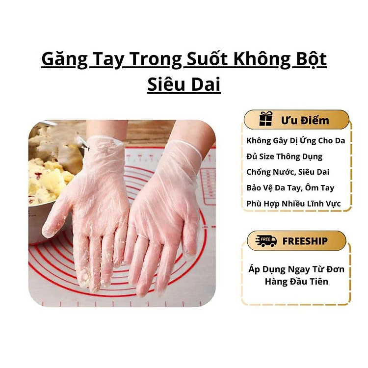 50 Găng Tay Size M Không Bột Màu Trắng Trong Suốt Dùng Cho Chế Biến Thực Phẩm Làm Đẹp Spa Massage Thẩm Mỹ