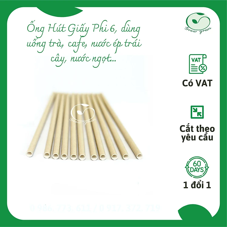 100 Ống Hút Giấy Phi 6 x 197mm - Sản Phẩm Thân Thiện Với Môi Trường