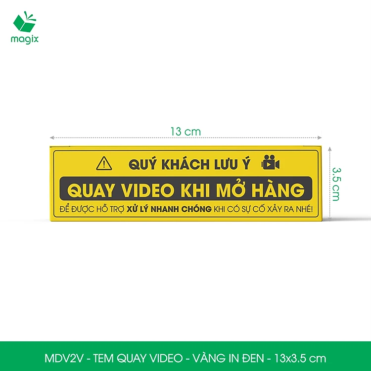 100 Tem chú ý quay video trước khi mở hàng, decal dán hộp - 13x3,5 cm - Vàng in đen - MDV2V