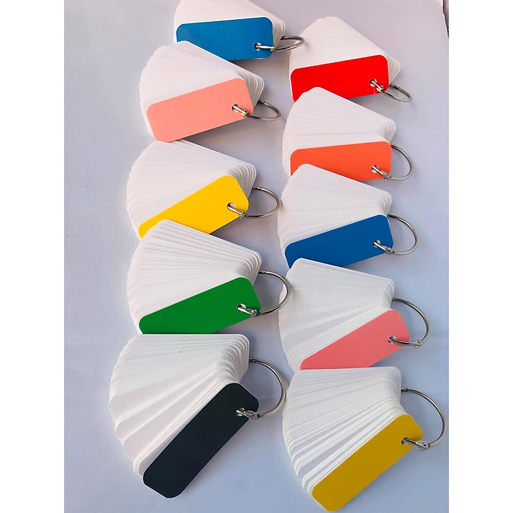 Bộ thẻ ghi nhớFlashcard 100 thẻ flashcard trắng học từ vựng Anh Nhật Hàn Trung bo góc kèm khoen + BÌA CỨNG 3D Bộ thẻ học từ vựng trắng tiếng Anh- Trung-Nhật-Hàn Công dụng : Rất tiện nghi và dễ sử dụng, bạn có thể áp dụng biện pháp ghi chép chính tả sau đó dùng phương pháp gợi nhớ bằng cách đi đâu cũng mang theo, rảnh ra là học, học mọi lúc mọi nơi, trên xe bus, trong lúc chờ đợi, tận dụng hết thời gian trống có thể. Ghi nhớ thường xuyên - liên tục - liên liên liên tục -->> Từ vựng đó dễ ngấm hơn, nhớ lâu hơn. Một mặt bạn viết từ Tiếng Anh, Trung, Nhât,.. và phiên âm, Cụm từ dùng kèm hoặc một câu ví dụ ngắn.