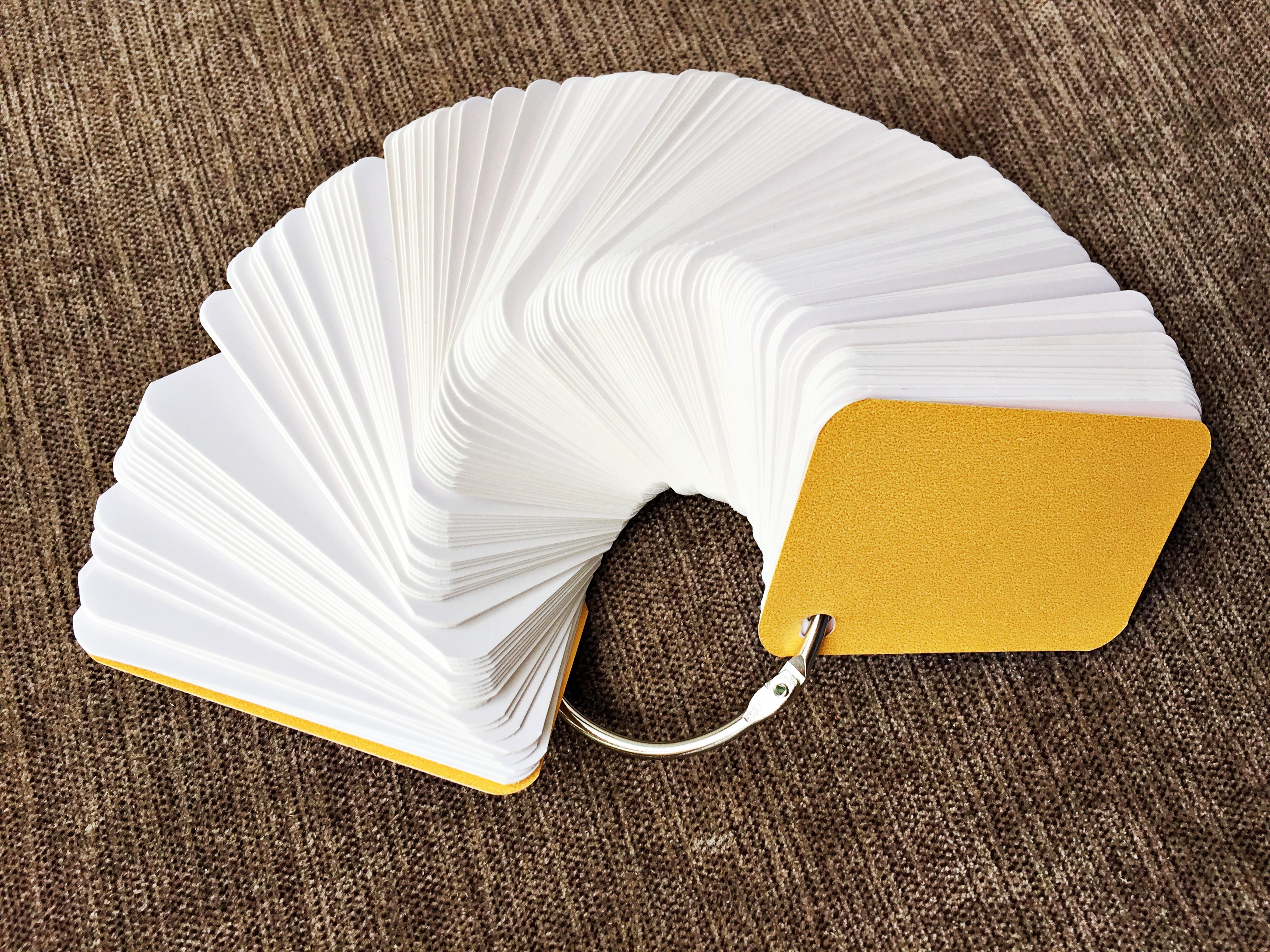 100 thẻ flashcard trắng 4x7siêu dày bo góc  tặng kèm khoen +bìa cứng vân 3D