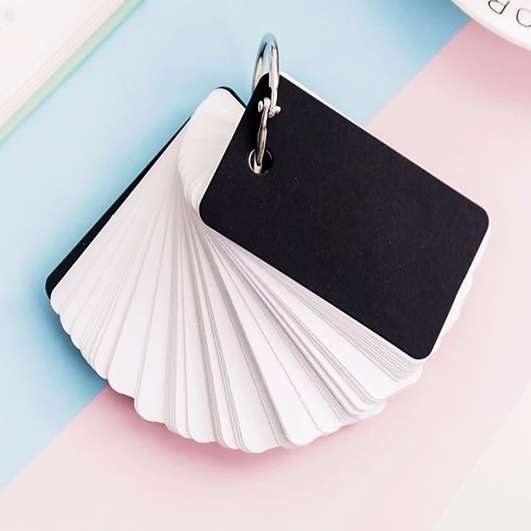 100 Thẻ flashcard trắng bo góc siêu dày 5x8cm + khoen + 2 bìa cứng 3D(bìa giao màu ngẫu nhiên)