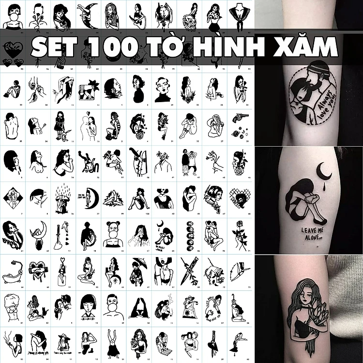 100 tờ hình xăm cô gái tình yêu quyến rũ trắng đen phụ nữ hiện đại unisex Legaxi