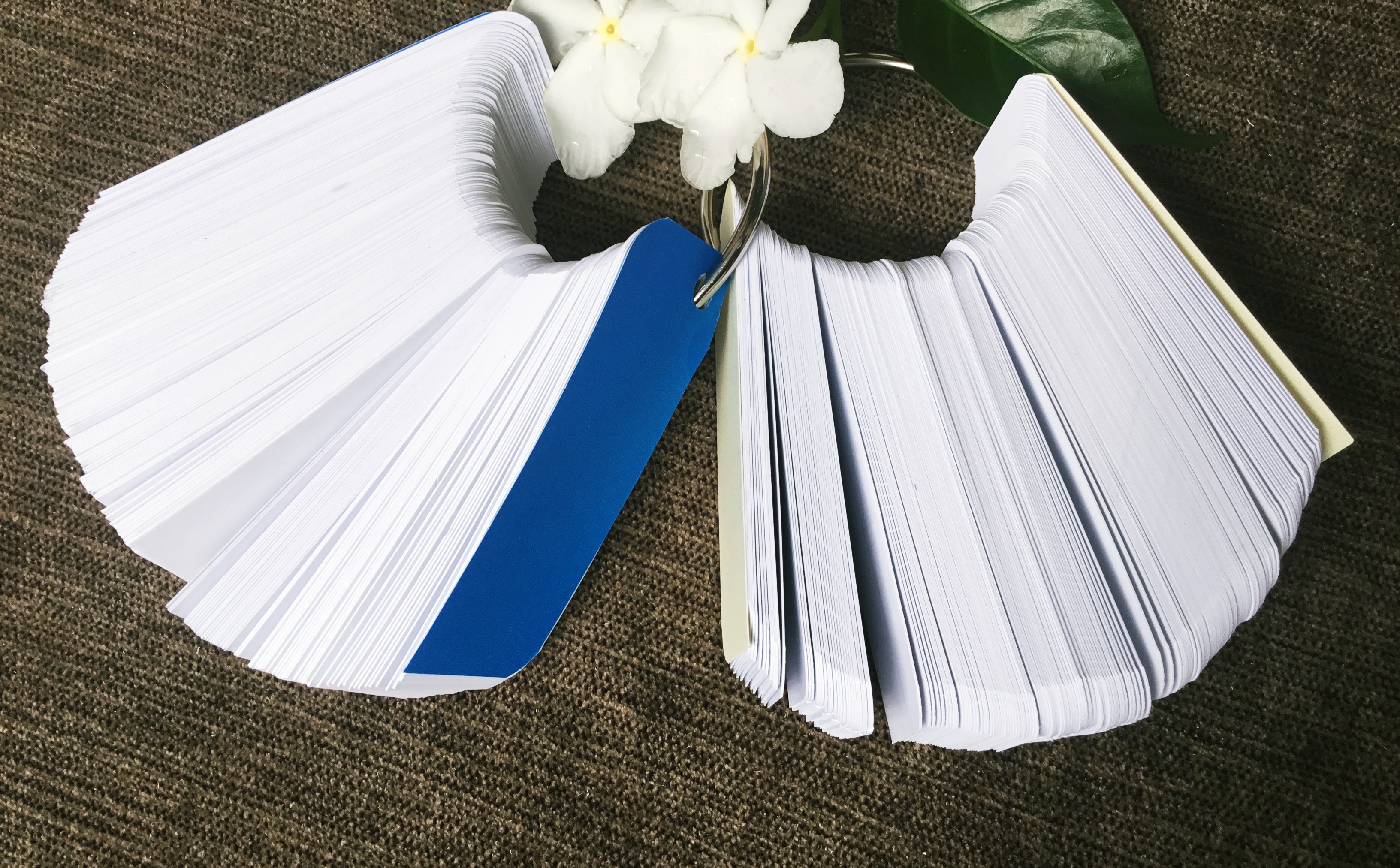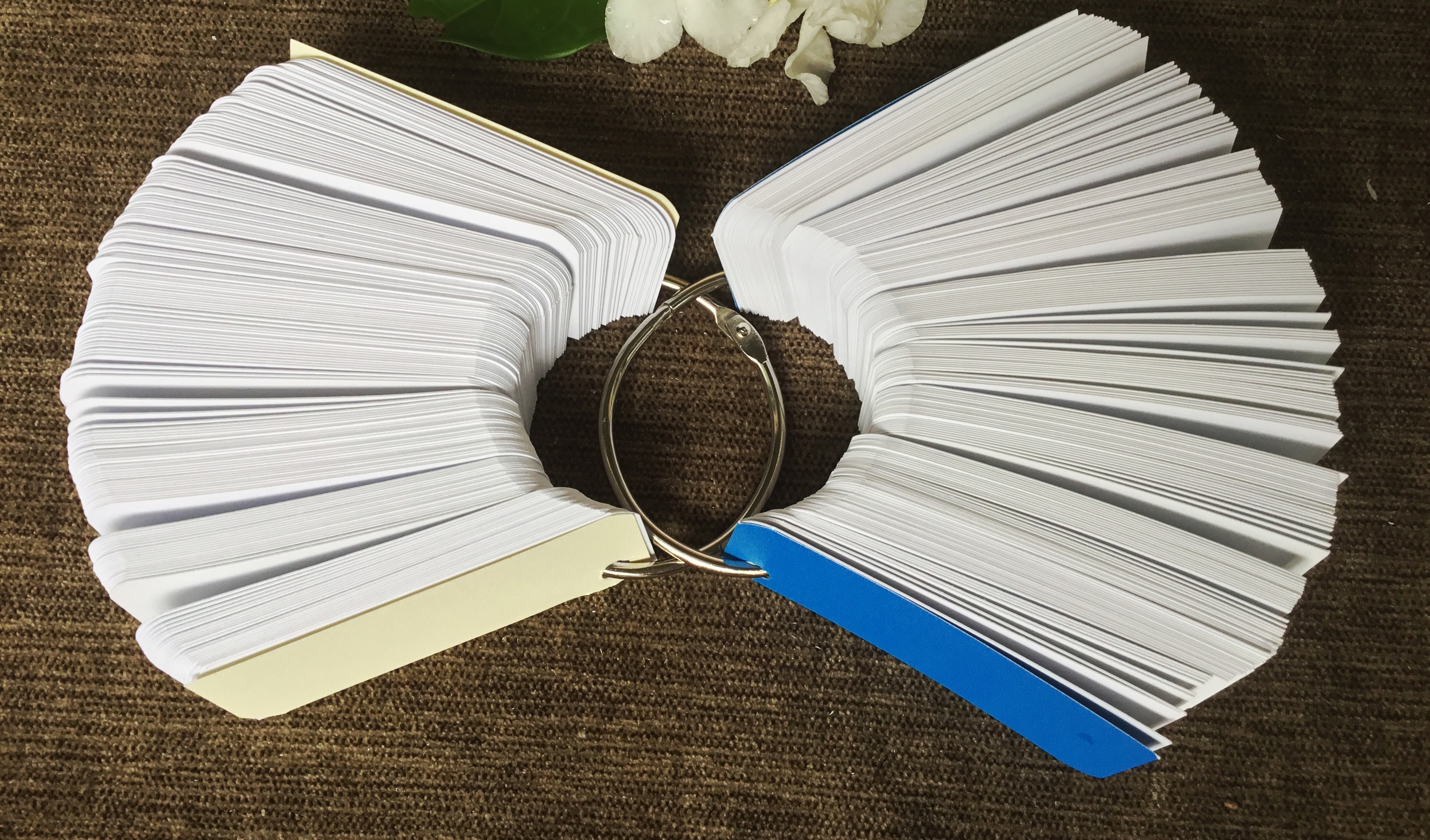 1000 thẻ flashcard trắng (tương ứng 10  xấp mỗi xấp 100 thẻ) 3x8 siêu dày bo góc kèm khoen bìa