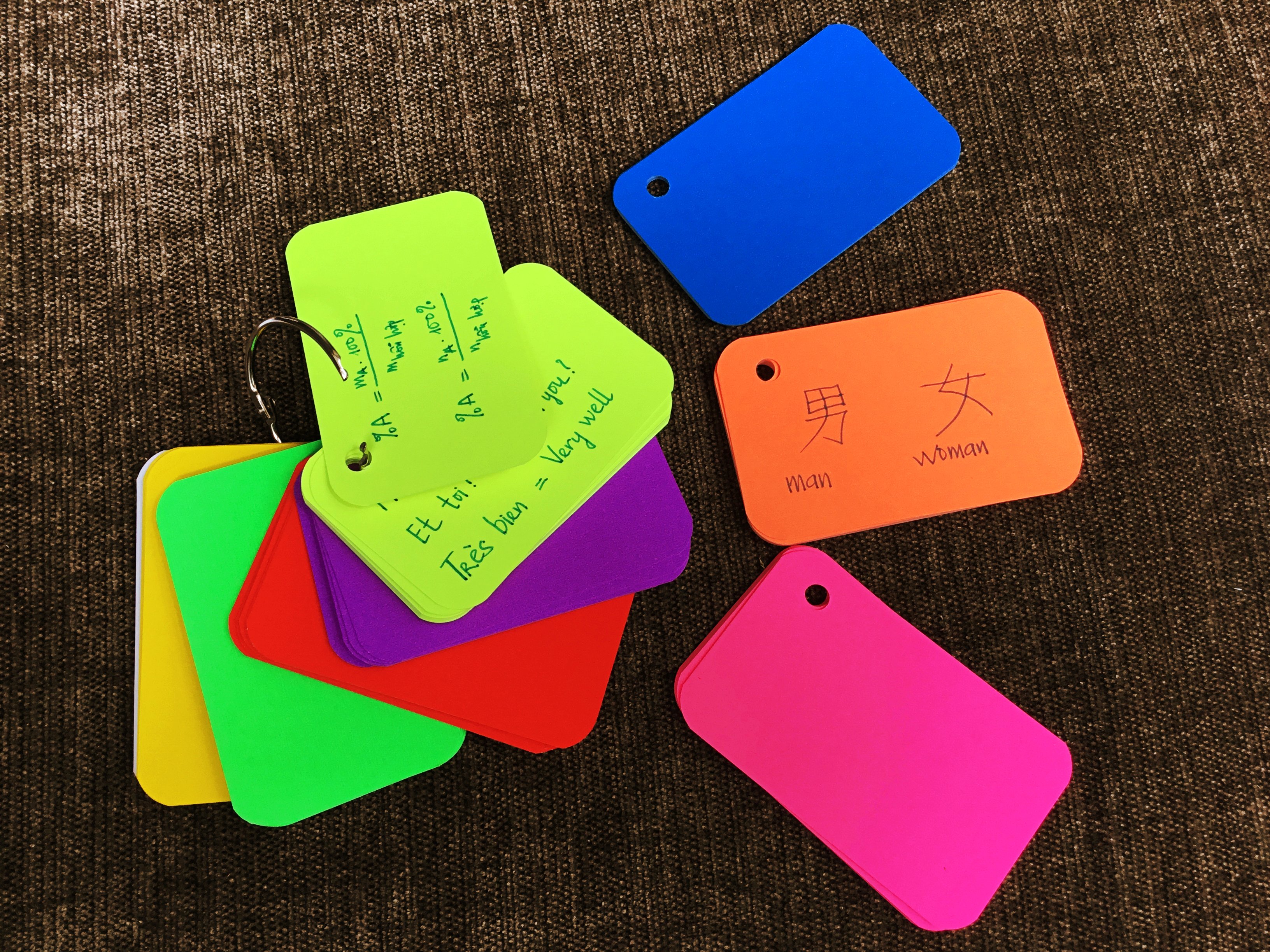 1000 thẻ flashcards trắng( 10 xấp mỗi xấp 100 thẻ) 8 màu dạ quang cao cấp học tiếng anh