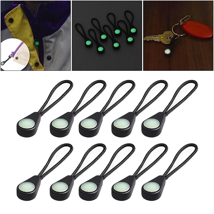 10PCS, Luminous Zipper Pull Replacement Glow in Dark Zipper Tab Tags Cord Extension Fixer for Luggage, Backpacks, Jackets, Purses, Handbags