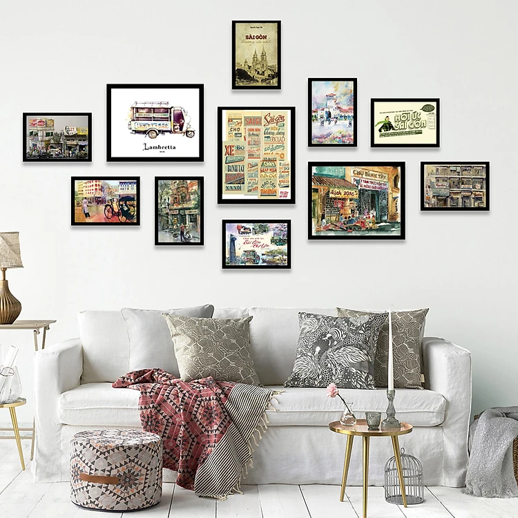 11 KHUNG ẢNH TREO TƯỜNG CÓ KÍNH KÍ ỨC SÀI GÒN BINBIN KA263/TẶNG KÈM ĐINH 3 CHÂN