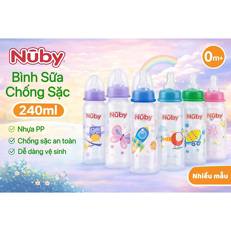 [ 1166 ] Bình sữa chống sặc Nuby cổ thường, 240ml ( 0m+ )