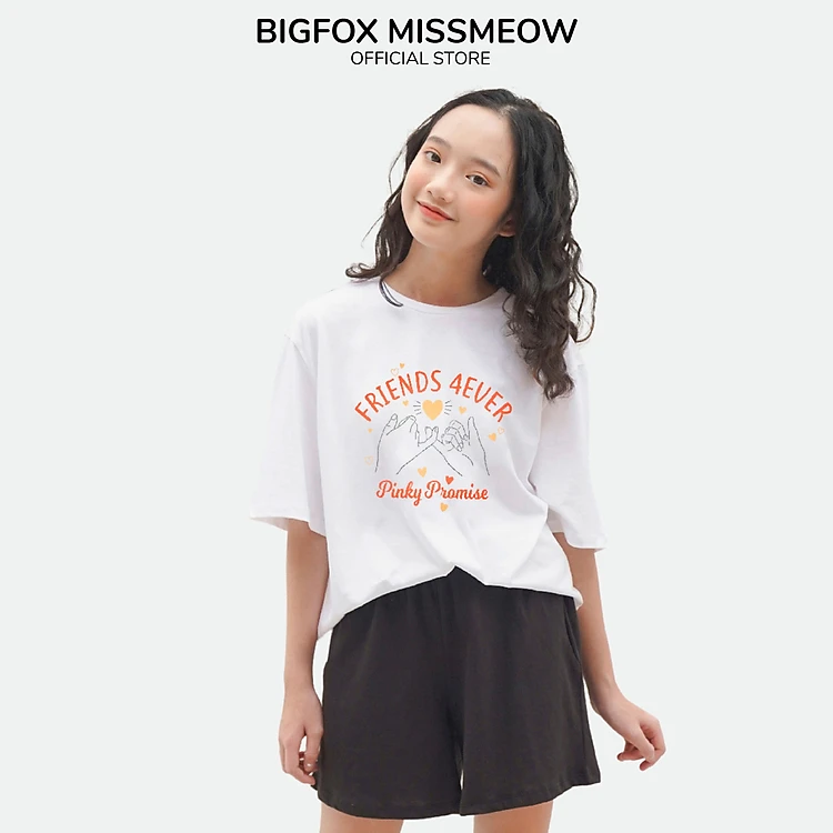 [MUA 1 SP TẶNG 1 SP - QUÀ TẶNG NGẪU NHIÊN]Áo Mùa Hè Cho Bé Gái MissMeow,Size Đại ,Áo Cotton Thun Cộc Tay Dáng Rộng In FRIENDS 4EVER 12-15