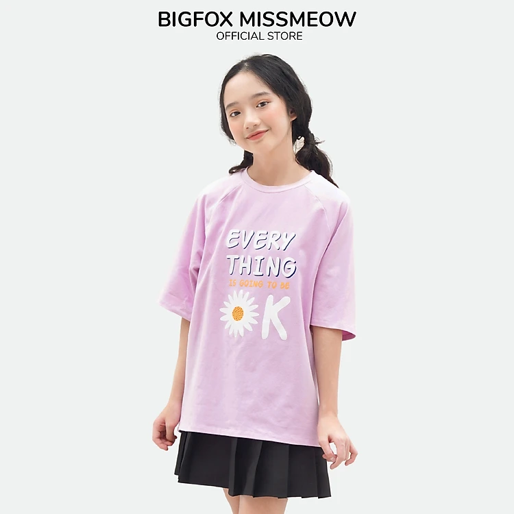 Áo Phông Bé Gái MissMeow Áo Thun Cho Bé Cộc Tay Dáng Rộng Size Đại In Hoa Cúc Every Thing 12-15