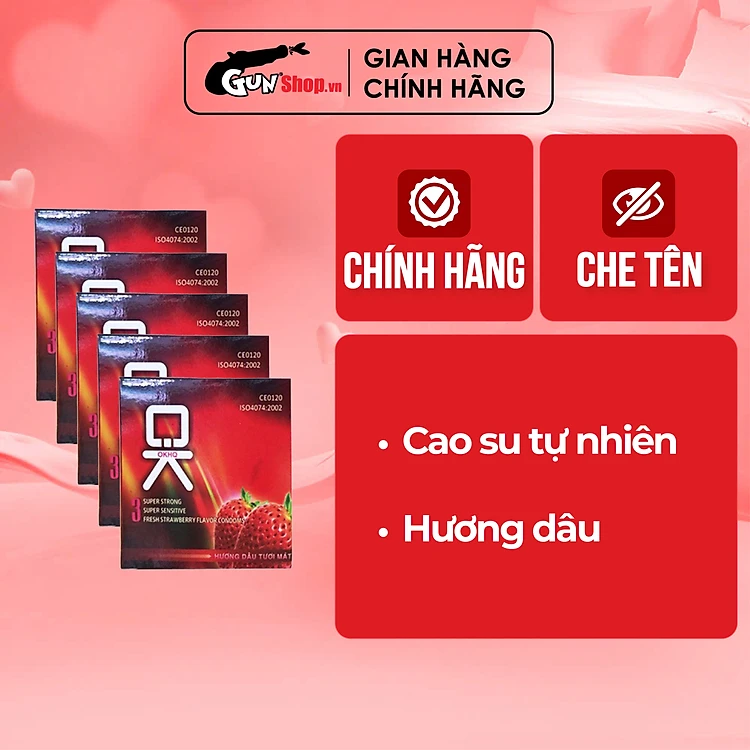 [15 cái] Bộ 5 hộp bao cao su OKHQ hương dâu | Hộp 3 cái