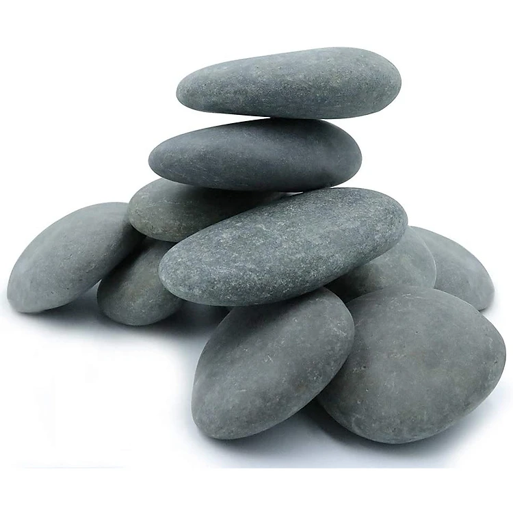 Đá sỏi đen viên lớn này rất tròn và đẹp, có nhiều màu đa dạng, chủ yếu là đen xám.