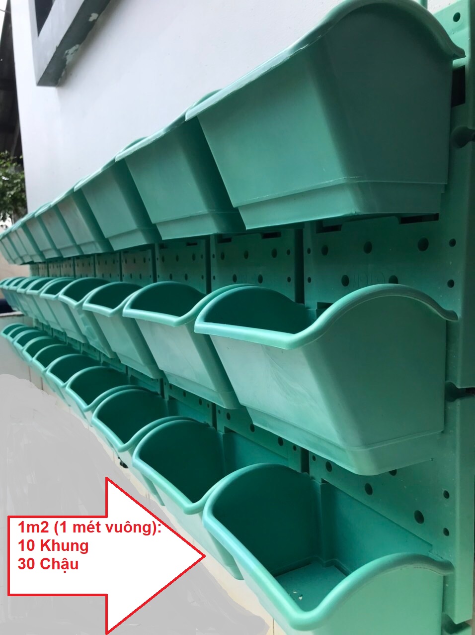 1m2 Vườn tường HOLO - Khung chậu nhựa trồng cây trồng rau trồng hoa trên tường - Nhiều màu (10 khung + 30 chậu)