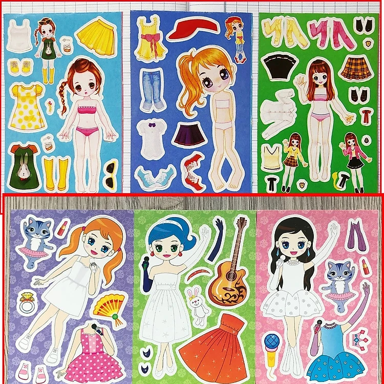 [2 bộ chứa 8 hình ]Dán hình búp bê công chúa thay quần áo và đeo giày - Sticker doll so cute (Giao ngẫu nhiên)