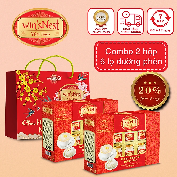 Tổ yến (20%), đường phèn giúp bồi bổ cơ thể, tăng sức đề kháng, phục hồi sức khỏe, giảm mệt mỏi, ổn định thần kinh, trí nhớ, kích thích tiêu hóa, phục hồi sức khỏe nhanh chóng trong thời gian dưỡng bệnh, dùng thường xuyên chống lão hóa