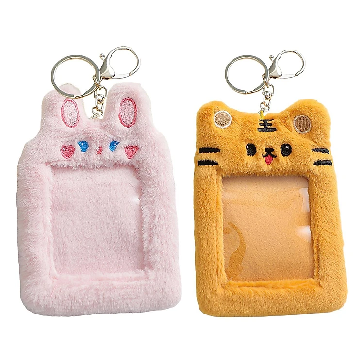 2 Plush Keychain Holder Protective Case Photocard Holder for Household