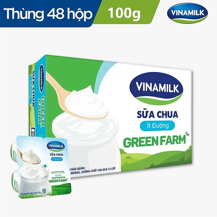 2 Thùng Sữa chua ăn Vinamilk Love Yogurt Green Farm Ít Đường Hộp 100g 48 hộp/thùng