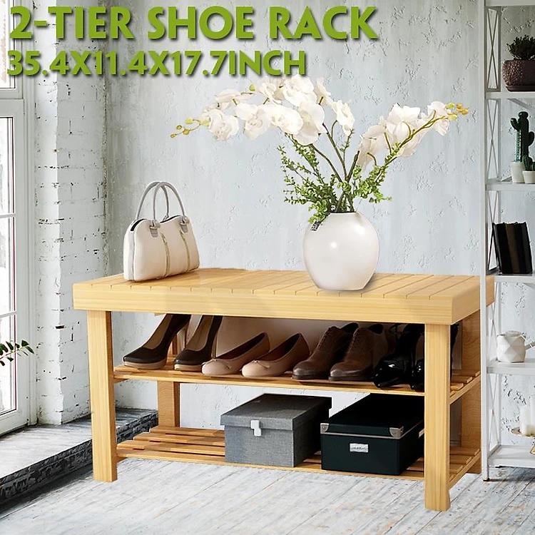 2-tier Bamboo Shoe Rack Bench Entryway Storage Organizer with Seat Shoe Shelf