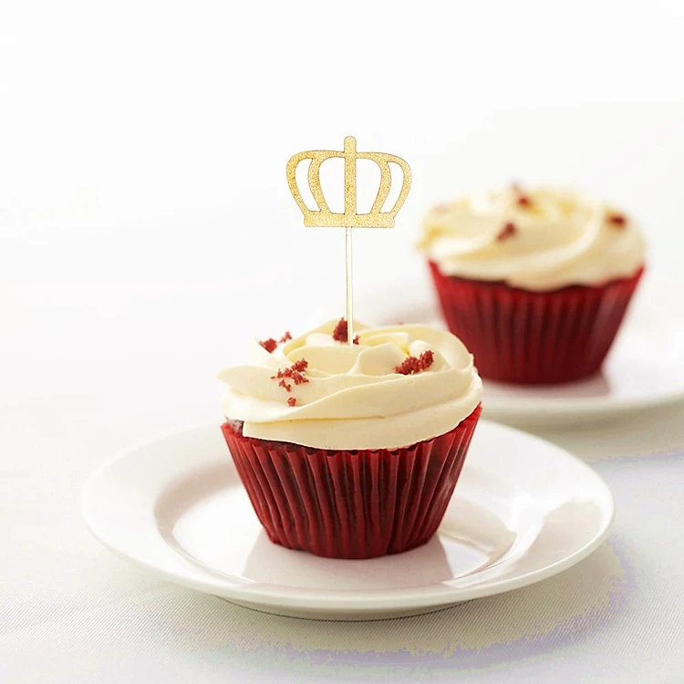 20 Pcs Gold Glitter Crown Cupcake Cake Toppers Pick Wedding Bridal Party