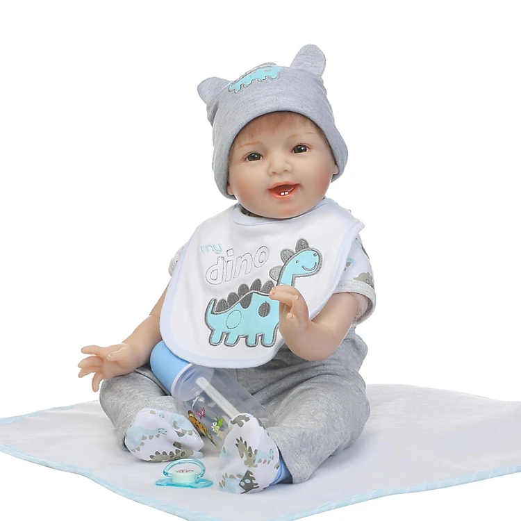22inch 55cm Reborn Baby Doll Girl PP filling Silicon With Blue Dinosaur Clothes Lifelike Cute Gifts Toy