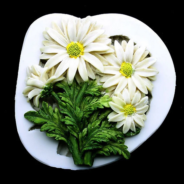 Khuôn silicon làm rau câu 4 hoa cúc họa mi kèm lá - Loại 10 cm - Mã số 1147