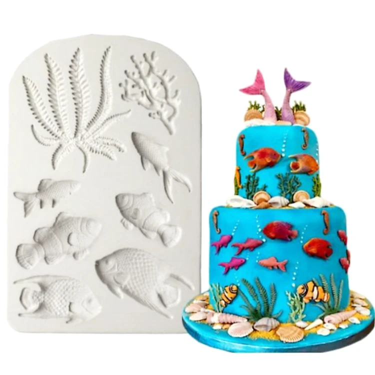 Khuôn silicon làm bánh, rau câu cá biển, san hô, rong biển - Mã số 1098