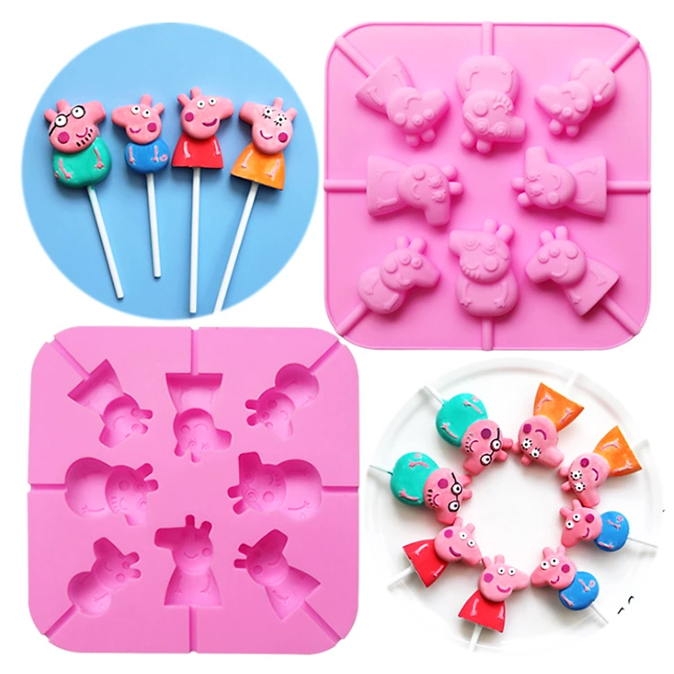 Khuôn silicon làm rau câu, socola, kẹo mút 8 heo con Cute Peppa – Mã số 1056