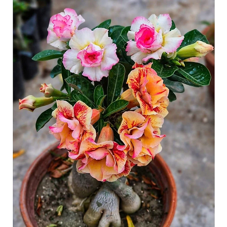Hạt giống hoa sứ kép Thái Lan 2 màu cam và trắng viền hồng cánh nhọn - Bịch 10 hạt – Mã số 2026