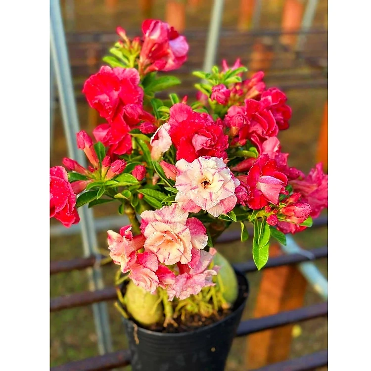 Hạt giống hoa sứ ghép hoa Thiên Vương 2 màu đỏ trắng cánh to nhiều tầng - Bịch 10 hạt – Mã số 2095