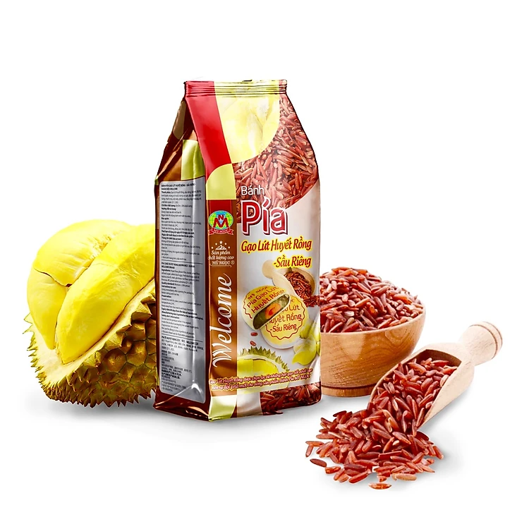 240g Bánh pía MỸ NGỌC gạo lứt HUYẾT RỒNG sầu riêng tươi 1 BÁNH có 1/4 TRỨNG MUỐI